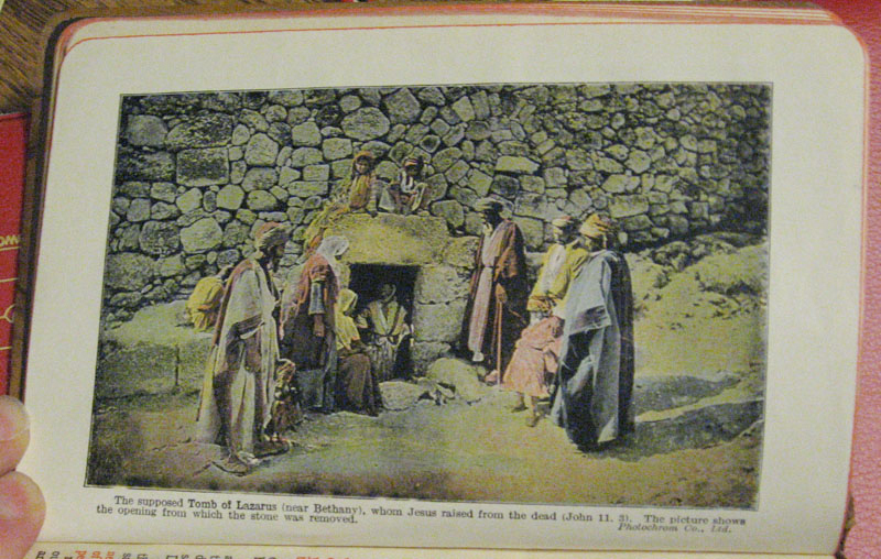 I went to the local antique shop and found this beautiful Bible. It has an engraved wooden cover. I also appreciate it’s using photographs for some of the illustrations inside the book.