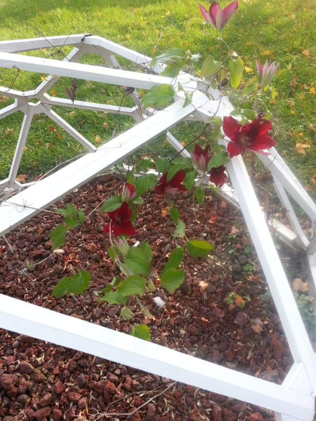 Here’s an old picture with a crimson clematis. I have used it as a trellis for several years.