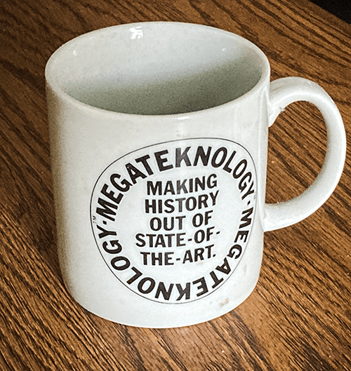 The Macromedia hat is a kind of trophy. When I was at Purdue, I took a computer graphics class. One project was to simulate a 3-d moveable arm. The memorable part was that I did it so well that they gave me a special Megatek coffee mug as a prize. I feel that it is one of my favorite trophies. I still have it 35 plus years later.